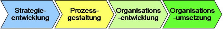 Die Prozesse und die Organisation dienen der Umsetzung der Strategie, entsprechend ist die Reihenfolge bei Veränderungen.